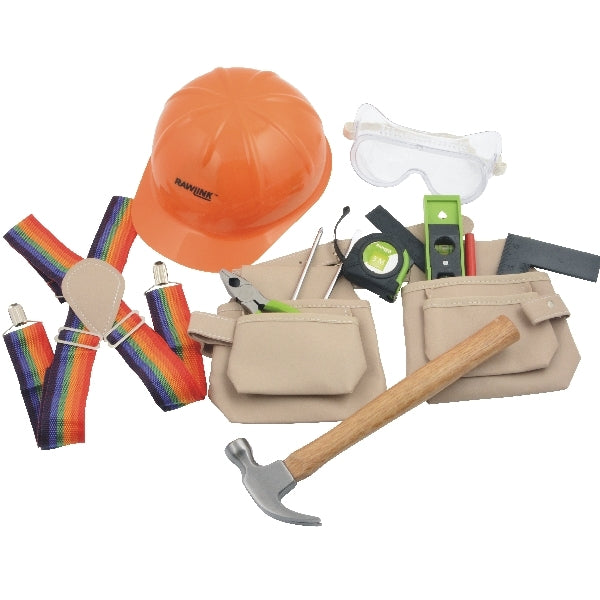 Jokaisen pikkunikkarin toivelahja. Sarja sisältää työkaluvyön, henkselit, kypärän, suojalasit, rullamitan, pihdit, ruuvimeisselinx2,suorakulman, vasaran, vesivaa'an, viivoittimen sekä merkkauskynän. Sisältää pieniä osia....