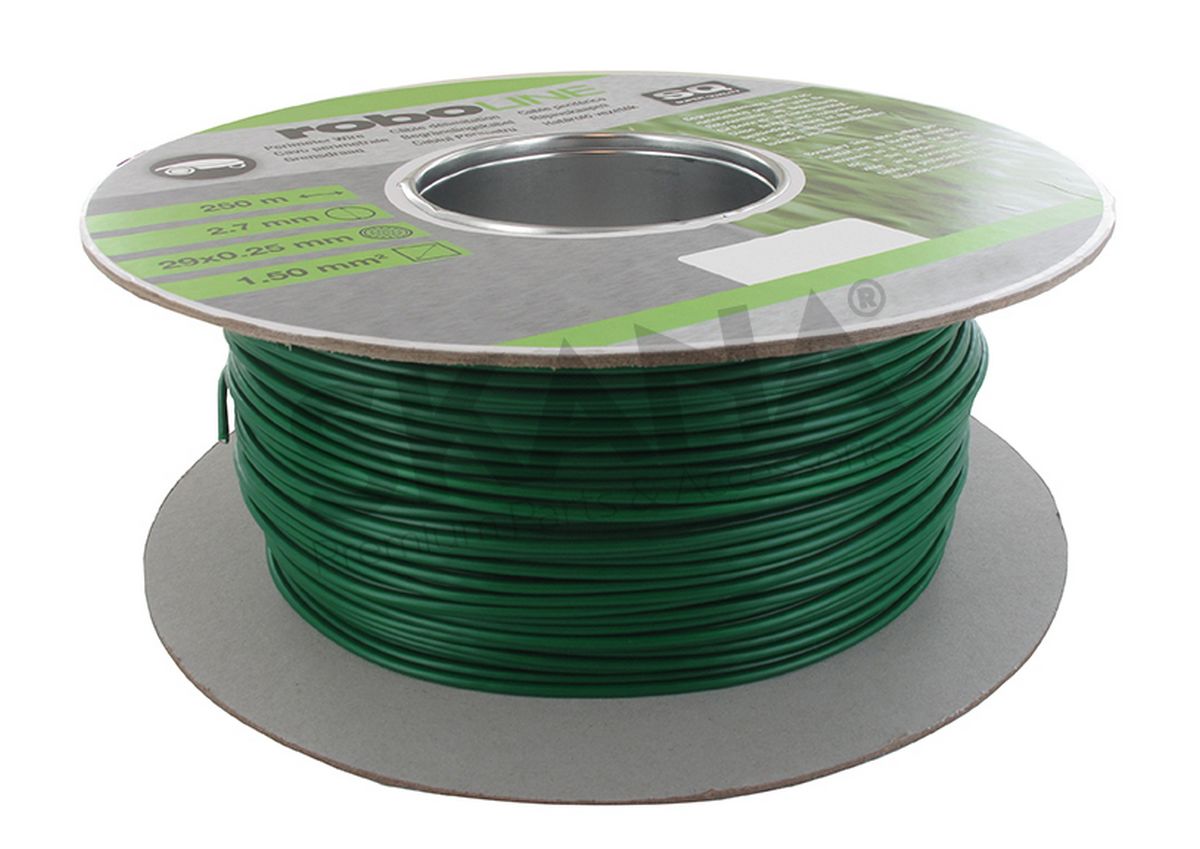 Robottileikkurin rajakaapeli yleismalli. Tinattua alumiinia/kuparia.Pituus 250m - 1,5mm² - ulkohalkaisija ø 2,7mm.**varastopoisto, saatavana rajoitettu varastoerä !!!**