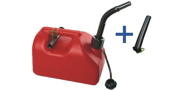 Kombikannu ammattikäyttöön, tilavuus 5 + 2.5 L kaatonokat sekä öljy- että bensapuolella, bensapuolella ylitäytönestin. Hyväksytty polttoainekannuksi !!
