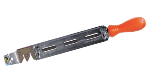 Viilanohjain ja haritusrauta samassa. Viilan kiinnitys kahdella siipimutterilla, joten viilan vaihto käy käden käänteessä. Sopii 1,6 mm ja 1,8 mm...