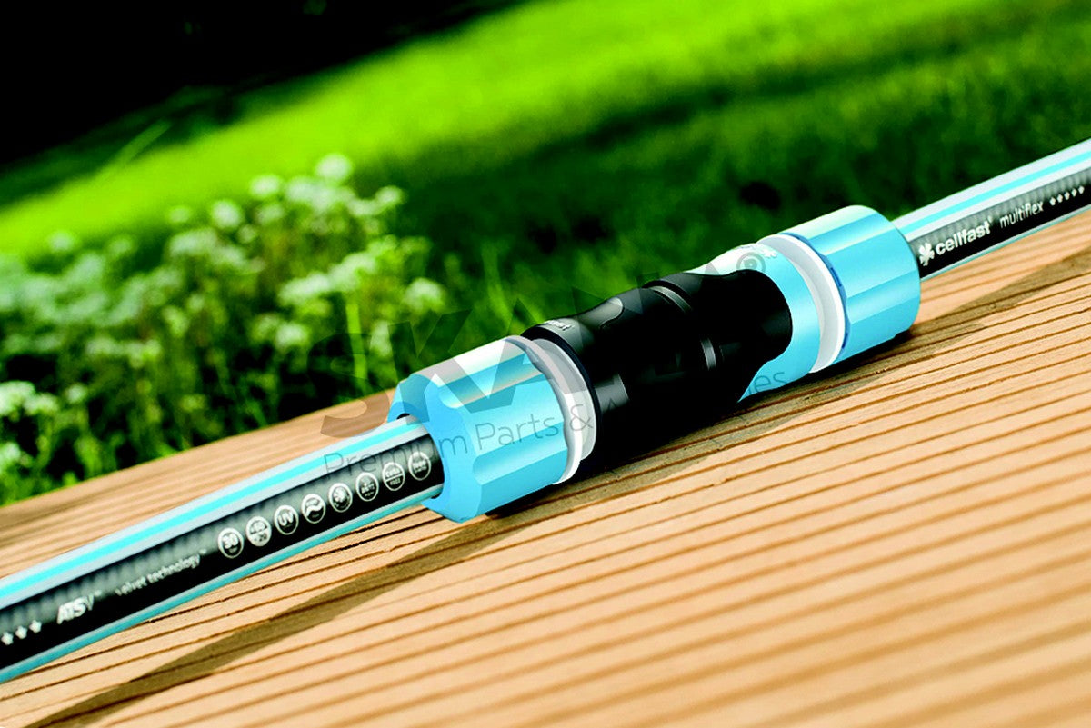 Liitinkappale jolla saadaan yhdistettyä kaksi pikaliittimillä varustettua puutarhaletkua toisiinsa.