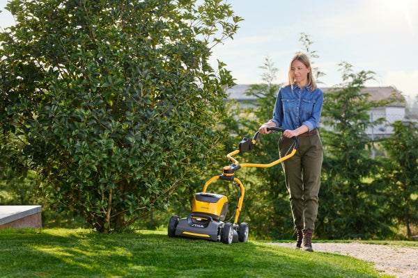 akkukäyttöisen ruohonleikkurin mukavuus. Tämän tehokkaan, työnnettävän